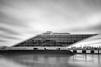 Dockland kantoorgebouw in Hamburg in zwart-wit