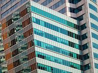 Detailopname van kantoorgebouwen in Rotterdam.