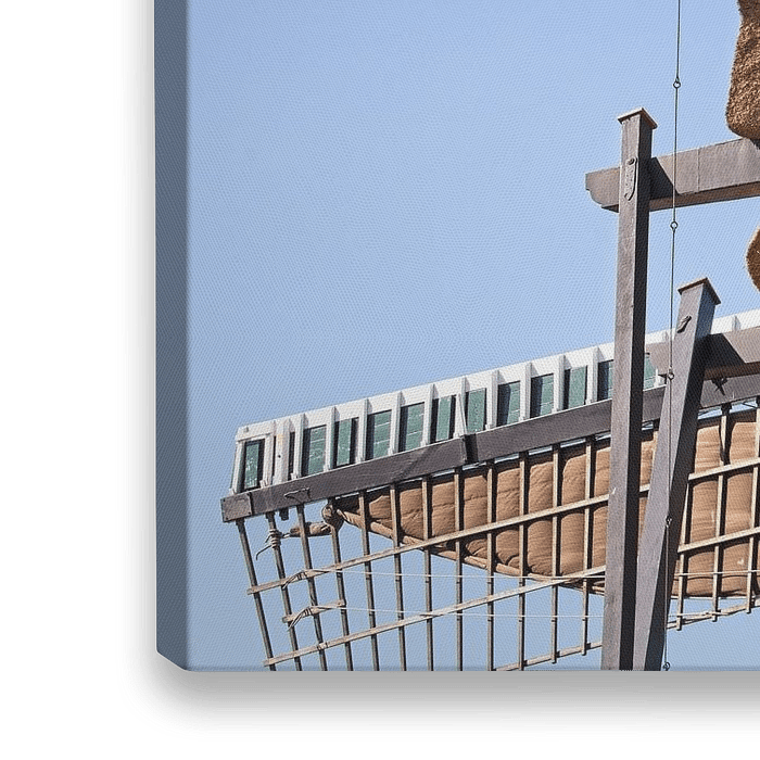 Detailopname van de achterzijde van de kap van een windmolen op de Zuid-Hollandse Kinderdijk