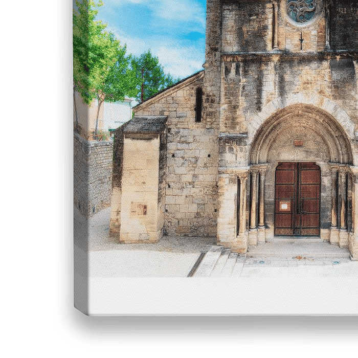 Een prachtig oud dertiende eeuwse kapel met binnen restanten van nog veel ouder. dit monument past in vele interieurs de uitstraling van deze samengestelde en bewerkte foto is tijdloos en dynamisch tegelijkertijd. Gevangen in het hemelgewelf van jagende wolken en blauw . Dit in tegenstelling met de rust op de grond.