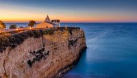 Nossa Senhora da Rocha is een kleine kapel die ligt op een rotspunt aan de kust van de Algarve in Portugal. De foto is genomen tijdens de zonsopkomst.