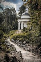 Een paadje wat naar een kleine kapel op de Wilhelmshöhe in Kassel Duitsland leidt. Op deze berg achter het slot is een groot park aangelegd met verschillende ornamenten, dit is er 1 van.