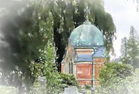 Kapel op het kerkhof. Digitale aquarel van een eigen foto.