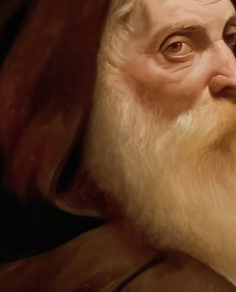 Almeida Junior's beheersing van licht en schaduw is duidelijk in de manier waarop hij het gezicht van de monnik modelleert, waardoor de contouren van de jukbeenderen, de neus en het voorhoofd naar voren komen. De baard is bijzonder goed uitgevoerd, met afzonderlijke strengen die zichtbaar lijken en een gevoel van textuur en leeftijd overbrengen.