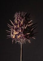 Kardoen (Cynara cardunculus) behoort tot de vergeten groente en is familie van de artisjok. Een plant uit het Middellandse Zeegebied. Wordt nog steeds gegeten in Zuid-Europa en dat al vanaf de 4e eeuw voor Christus. Oeroud dus. Prachtige planten die veel ruimte vragen met mooi grijs viltig blad. Tijdens de bloei trekken ze vlinders, bijen en hommels aan. Hier afgebeeld een laat exemplaar, komt nauwelijks meer in bloei, maar wel prachtig om te drogen, met veel subtiele tinten.