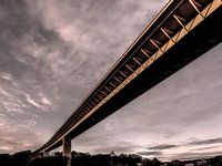 Brug over de Maas in Dinant. Met supergroothoek genomen, en in goud-paarse (Mauve) tinten gezet.