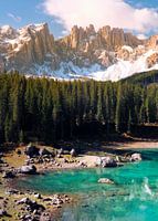 De Karersee (Lago di Carezza) in de Dolemieten, Italië.