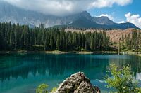 Prachtig groen gekleurde Karersee in de Dolomieten in Noord Italië.