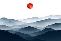 Dit fascinerende digitale kunstwerk, dat doet denken aan traditionele Oost-Aziatische penseelschilderijen, presenteert een rustig en adembenemend landschap. Lagen van mistige, indigo-gekleurde bergen vervagen in de verte en creëren een gevoel van diepte en rust. Boven dit serene panorama hangt een opvallende, levendige karmozijnrode maan, een krachtig brandpunt dat een vleugje mysterie en drama toevoegt aan de scène. Het contrastrijke kleurenpalet en de minimalistische compositie maken dit een perfect stuk om een rustig maar gedurfd statement toe te voegen aan elke woonruimte, van modern minimalistisch tot bohemien decor. Ideaal om af te drukken op canvas, metaal of papier van hoge kwaliteit.