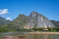 Koop de foto Karstgebergte aan de oever van de Mekong bij de Pak Ou Grotten, Laos van Walter G. Allgöwer op canvas, aluminium dibond, (ingelijste) fotoprint, behang en ArtFrame, op maat geprint in Fine-Art kwaliteit.