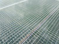 Broeikas voor het kweken van groenten op industriële schaal Luchtfoto van boven met wolken gereflecteerd in het glas.