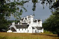in de buurt van de stad Pitlochry in Schotland, Verenigd Koninkrijk. Toen we aankwamen regende het een beetje, maar na een tijdje klaarde het net genoeg op om de zon het witte kasteel te laten oplichten.