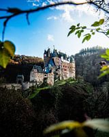 Het kasteel Eltz, al omlijst door de kleurrijke takken van de struiken en heesters