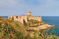 Prachtige opname van middeleeuws 14de eeuw kasteel Fort la Latte bij Cap Frehel aan de smaragdkust in Bretagne, Frankrijk, in de zomer aan de Atlantische oceaan