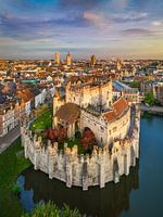 Kasteel Gravensteen met de oude stad op de achtergrond, Gent, België