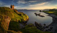Kasteel van Gylen en Port a'Chaisteil bij zonsondergang, Isle of Kerrera, Schotland