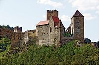 Kasteel Hardegg boven het Thayatal in Oostenrijk