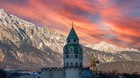 Kasteel Hasegg in Hall in Tirol Oostenrijk Alpen bij zonsondergang