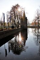 Reflectie van de zon in het water bij Kasteel Hoensbroek in Limburg