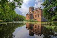Prachtige opname van Kasteel Loenersloot in de zomer met wolken en spiegelende reflectie in het water van de slotgracht