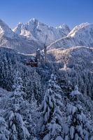 Het landschap in de Allgäuer Alpen (Duitsland) biedt in december een spectaculair winters decor. Het beroemde koninklijke kasteel van koning Ludwig II troont in het midden.