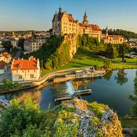 Kasteel Sigmaringen aan de Donau bij zonsondergang