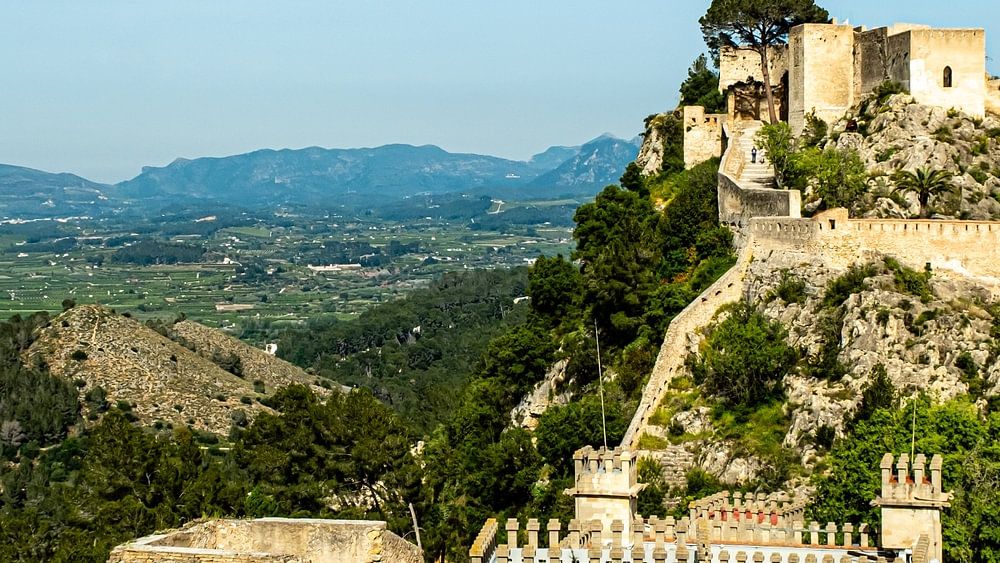 Panoramisch uitzicht op het kasteel El Castillo en het landschap in Xativa Valencia Spanje
