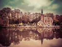 Een weerspiegeling van klein Kasteel bij het water in de stad Brugge in Belgie.