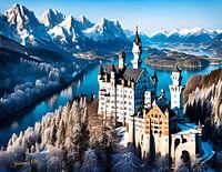 Ontsnap naar een sprookjeswereld met onze betoverende weergave van kasteel Neuschwanstein. Dit iconische Beierse meesterwerk, gelegen op een rotsachtige klif, is een waar testament van de menselijke verbeelding. Johanna's artistieke visie brengt de betoverende schoonheid van het kasteel tot leven, omgeven door het adembenemende Alpenlandschap.