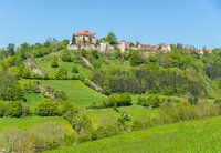 Zonnig tafereel in Hohenlohe met kasteel Stetten op een heuvel in de lente