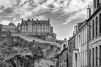 Gezicht op Edinburgh Castle vanuit New Town. Het kasteel van Edinburgh is het oriëntatiepunt en vormt het beeld van de Schotse hoofdstad met zijn imposante ligging op Castle Rock, de krater van een uitgedoofde vulkaan.