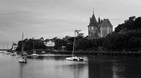 Een 16:9 foto in Zwart-Wit van een avond bij het kasteel van Pornic.