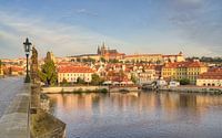 Uitzicht vanaf de Karelsbrug naar de Praagse Burcht in het ochtendlicht