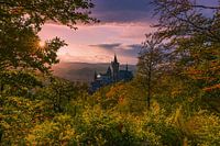 Het beroemde Wernigerode-kasteel bij zonsondergang.