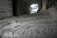 In la Roche en Ardenne liggen de overblijfselen van dit prachtige kasteel. De grillige textuur van de natuurstenen muren en de uit de rotsen gehakte trap steken prachtig af tegen de blauwe lucht. Deze schitterende plaat krijgt zo bijna een grafische kwaliteit.