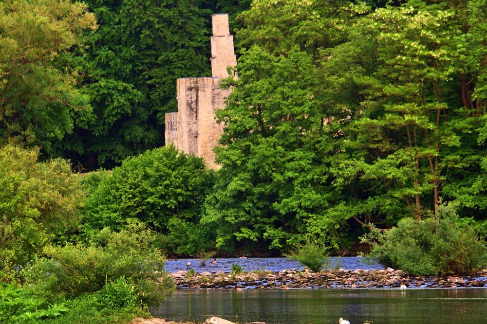 Onderweg met de MS Schwalbe op de Ruhr van Witten naar Herdecke met de kasteelruïne Hardenstein en de watervallen