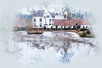 Een afbeelding van een bevroren kasteelvijver behorend bij het kasteel van Rhoon, gemeente Albrandswaard.