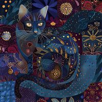 Details: kat, abstract, kleurrijk, kunst, bloemen, patroon, modern, decoratief, goud, blauw