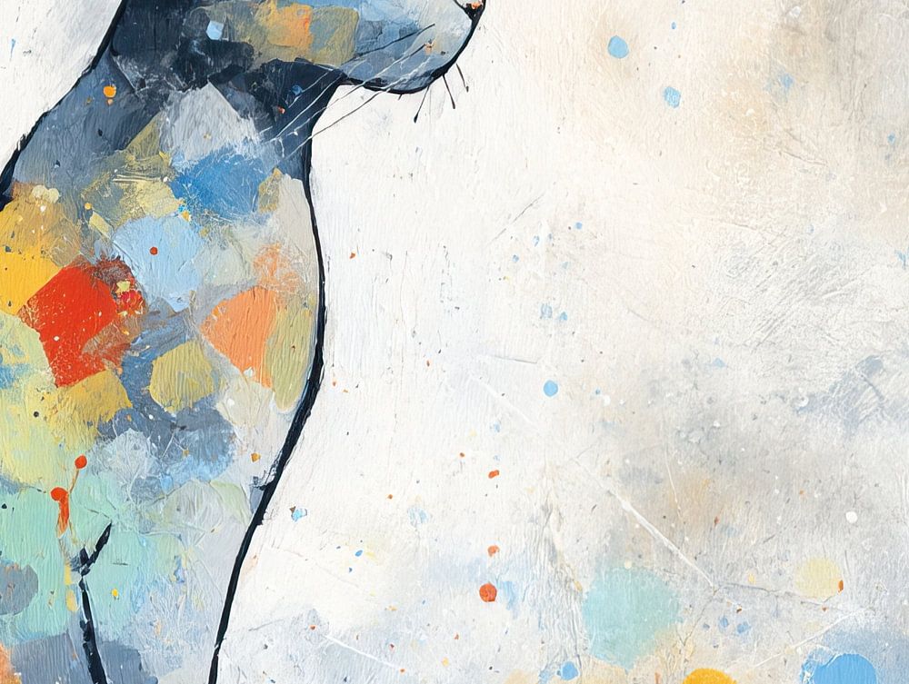 Details: kat, abstract, kleurrijk, schilderij, stippen, moderne kunst, dieren, blauw, oranje, geel