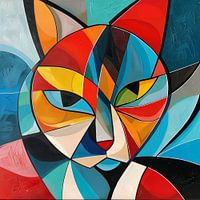 Dit kubistische kattenportret combineert felle kleuren en geometrische vormen tot een levendig kunstwerk. De dynamische kleurblokken en gedurfde lijnen vangen de essentie van de kat op een moderne, abstracte manier. Dit schilderij is ideaal voor liefhebbers van abstracte kunst en kubisme en brengt energie en stijl in elke kamer. Het is een perfecte toevoeging aan je huis of kantoor dat zowel kunst- als kattenliefhebbers zal aanspreken.