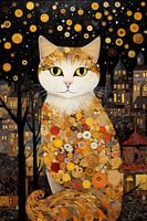 Elk kunstwerk in deze collectie is doordrenkt met de weelderige esthetiek van de art nouveau-beweging, gekenmerkt door weelderige versieringen, organische vormen en levendige kleuren. De katten in deze werken worden afgebeeld met een aura van majesteit en zelfverzekerdheid, omringd door golvende patronen en decoratieve elementen die de diepte van hun karakter benadrukken.