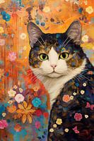 Elk kunstwerk in deze collectie is doordrenkt met de weelderige esthetiek van de art nouveau-beweging, gekenmerkt door weelderige versieringen, organische vormen en levendige kleuren. De katten in deze werken worden afgebeeld met een aura van majesteit en zelfverzekerdheid, omringd door golvende patronen en decoratieve elementen die de diepte van hun karakter benadrukken.