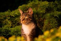 Onze lieve logeer poes Kitt genoot op het hek, tussen het groen van de klimop voor ons huis. Ondertussen hield ze de omgeving wel scherp in de gaten. In het licht van de ondergaande zon gaf het een prachtig plaatje.