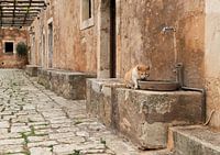 Drinkende kat in het klooster van Arkadi. Een prachtig klooster op Kreta.