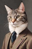 Mooi gedetailleerd portret van een kat in een net pak met stropdas.