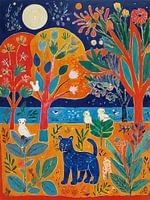 Kat in het bos stijl Henri Matisse