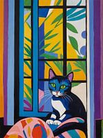 Koop dit abstracte kunstwerk Kat in het venster Stijl Henri Matisse van TOAN TRAN op canvas, aluminium dibond, (ingelijste) fotoprint, behang en ArtFrame, op maat geprint in Fine-Art kwaliteit.