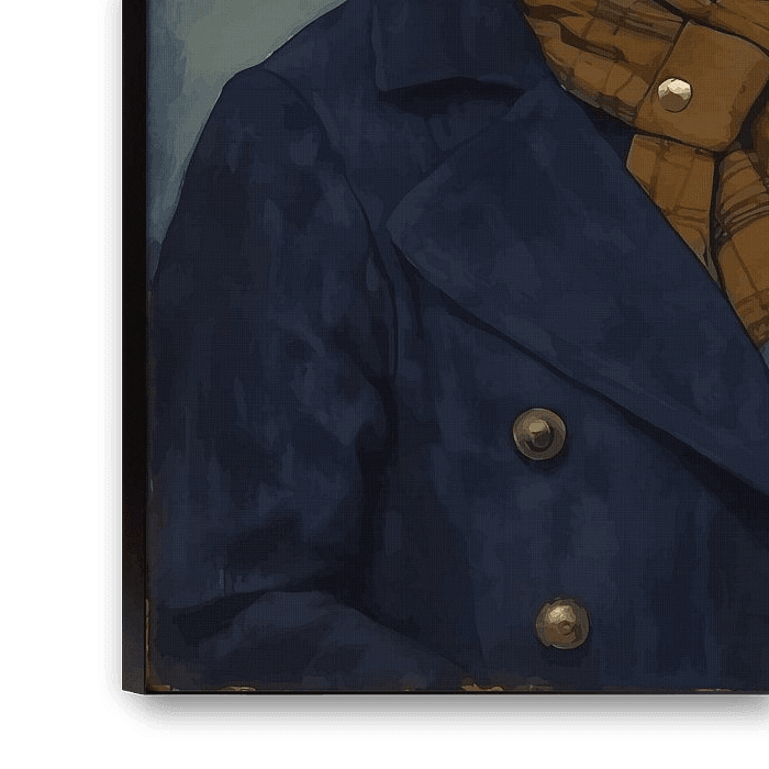 Dit buitengewone kattenportret neemt ons mee naar het hart van de industriële revolutie, waar rooklucht, machines en ambitieuze uitvindingen het tijdperk bepalen. De kat staat trots als een voorname figuur van de vooruitgang en belichaamt een mix van verfijnde waardigheid en het rusteloze momentum van een wereld die zich met ongekende snelheid ontwikkelt. Op de achtergrond zie je torenhoge ijzerfabrieken, spoorrails die de horizon doorsnijden en ovens die een heldere gloed werpen in een wazige schemering. Stoom krult omhoog als spookachtige linten en symboliseert transformatie en de kracht van de industrie. De schilderkunstige streken van de kunstenaar creëren een tactiele rijkdom, waardoor de vacht van de kat in levendig reliëf wordt gebracht terwijl het zachtjes opgaat in de harde metalen omgeving. Zijn ogen stralen van stille intelligentie en strategische vooruitziendheid - een waarnemer die zich volledig bewust lijkt te zijn van de monumentale verschuiving die om hem heen plaatsvindt. De kalme, waardige houding van de kat vormt een schril contrast met de bruisende chaos van uitvindingen en arbeid en dient als metafoor voor stabiliteit binnen de vooruitgang. Zachte accenten en gewaagde schaduwen roepen een klassieke museumwaardige sfeer op, terwijl subtiele textuurtoetsen de compositie een historische authenticiteit geven. Dit kunstwerk spreekt verzamelaars aan die houden van dieren met een diepgaande persoonlijkheid, die niet alleen een prachtig onderwerp vastleggen, maar ook de ziel van een tijdperk dat werd gedefinieerd door innovatie en veerkracht. Een verfijnd eerbetoon aan de gratie van katachtigen en de gedurfde geest van menselijke vooruitgang - tijdloos, boeiend en rijk aan mogelijkheden om verhalen te vertellen.