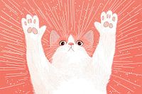 Dit ontwerp van een kat in een dynamische pose brengt energie en kracht samen. De kat lijkt zichzelf te presenteren op een speelse manier, met opgeheven poten en een gedurfde blik. De opvallende kleuren en lijntekening dragen bij aan een moderne uitstraling die past in een minimalistische of moderne interieur. Deze unieke afbeelding is een perfecte aanvulling op je woonkamer of slaapkamer voor een speelse, doch elegante uitstraling. De combinatie van zachte kleuren en scherpe lijnen creëert een visueel aantrekkelijke balans, waardoor het ontwerp niet alleen een stukje kunst is, maar ook een gespreksonderwerp voor elke ruimte. Dit ontwerp is ideaal voor wie op zoek is naar een expressief, hedendaags kunstwerk met een levendig karakter.