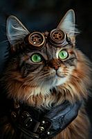 Een spinnende avonturier met felgroene ogen en een vleugje steampunkmagie! De stijlvolle bril voegt een vleugje mysterie en innovatie toe aan dit majestueuze wezen. Perfect voor in de woonkamer, waar het de verbeelding prikkelt en een gesprek op gang brengt. Dit katachtige icoon is de blikvanger in elke kamer!